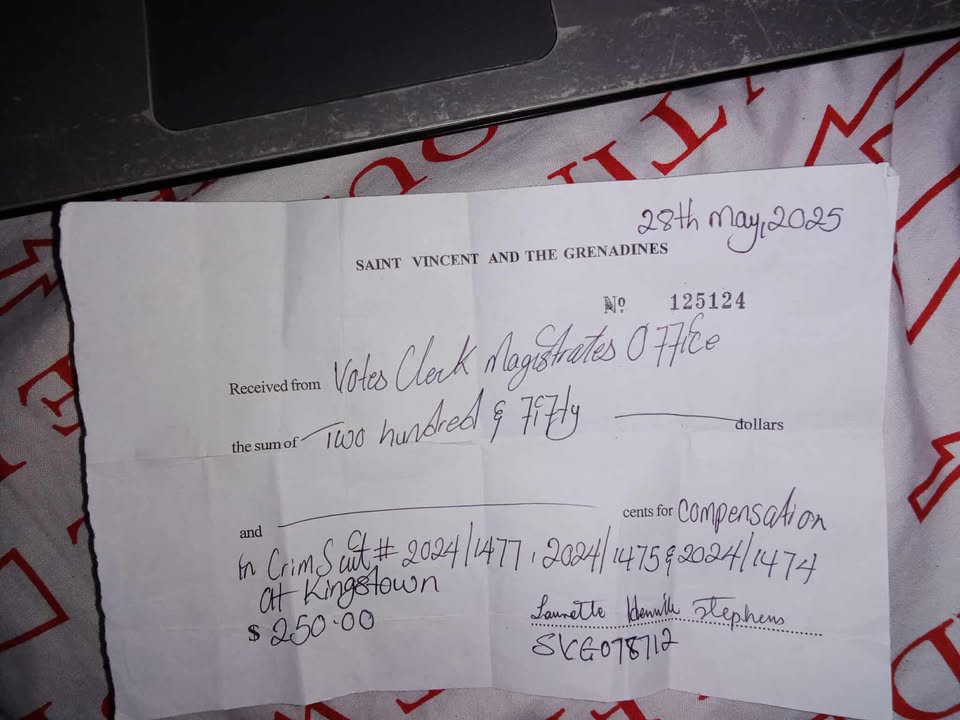 On the day of the court appearance, Jackson paid EC$250, which Stephens said was divided into EC$150 for herself and EC$100 for her daughter. Stephens provided Cliplet News with a photo of the official court receipt confirming that payment. However, she said that payment was the first—and only—amount received to date.